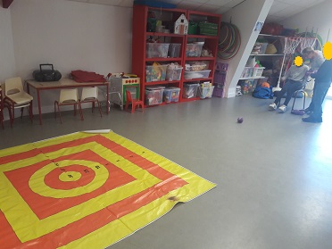 Aujourd'hui les enfants de l'IME des Mureaux sont venus une nouvelle fois participer à la séance de motricité des maternelles. Rien de tel que de lancer des objets dans le camps adverse pour travailler la notion "beaucoup" et "peu".
