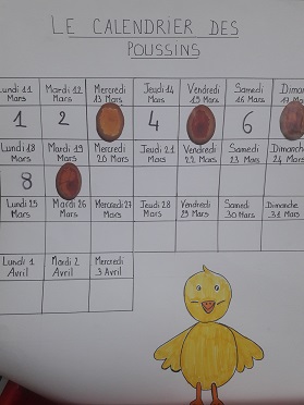 La classe de GS est très fière de vous annoncer la naissance de ses trois poussins, respectivement nommés Eclair, Choco et Filou!