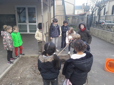Mardi les élèves qui restent à l'étude du soir ont enterré la capsule temporelle. Chacun a retroussé ses manches pour ensevelir notre témoignage de l'école du futur...