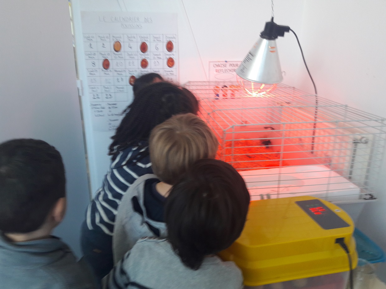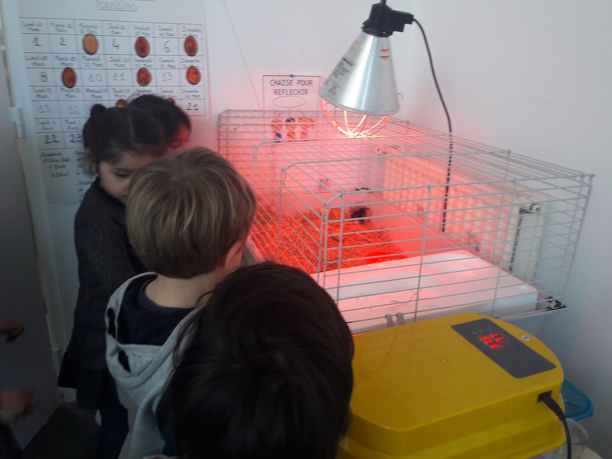 C'est l'attente en GS ! Les élèves attendent avec impatience l'éclosion des oeufs mis en couveuse depuis le retour des vacances!