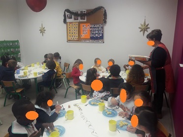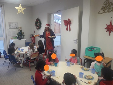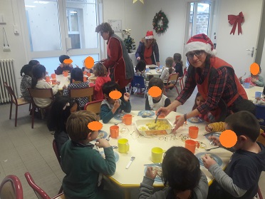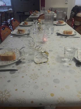 Repas de Noël jeudi 19/12. Merci à Silvia pour la décoration de la salle. Les enfants étaient sous le charme!
