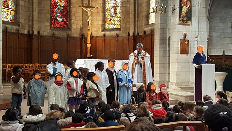 Aujourd'hui, nous avons eu l'honneur d'accueillir M. VANDROUX, directeur diocésain des établissements catholiques du 78. Accompagné de Mme FURIA, adjointe en pastorale, ils ont passé la matinée à l'école. M. VANDROUX s'est adressé à tous les élèves en rappelant les missions de l'enseignement catholique, en insistant sur l'importance d'acquérir des connaissances, de faire du sport et de donner du sens à tout grâce à la spiritualité et l'amour de Dieu qui nous engage à "nous aimer les uns les autres."