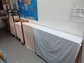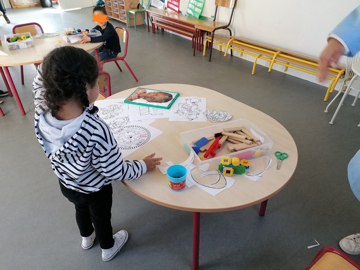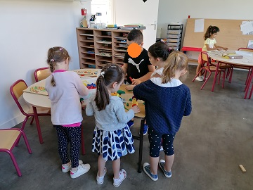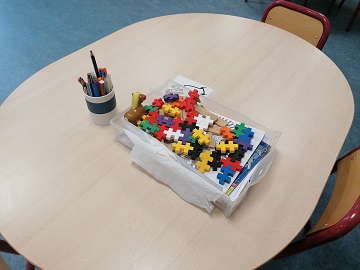 En maternelle, les élèves travaillent avec du matériel rangé dans une boîte nominative. Les coins jeux ont été proscrits.