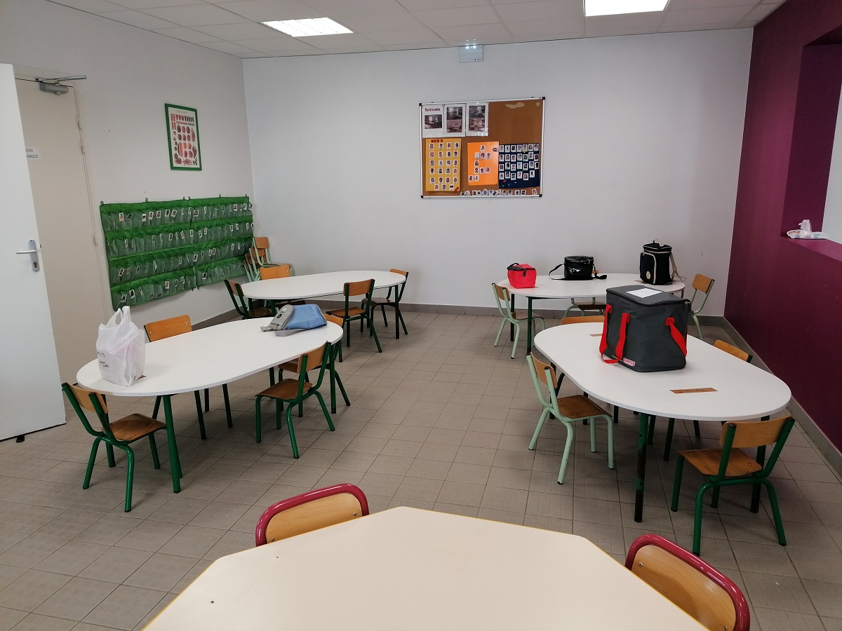 Les enfants viennent munis d'un pique-nique (repas froid uniquement), avec des couverts et une bouteille d'eau, le tout enfermé dans un sac isotherme.