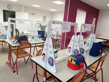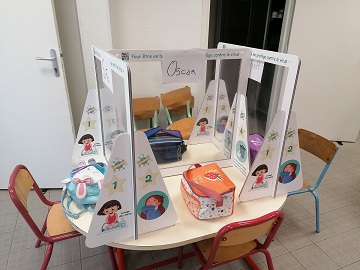Nous pouvons aussi compter sur la solidarité puisque nous avons été pourvus en barrières anti-projection pour la cantine, en produits sanitaires adaptés, en gel hydroalcooliques et en masques.