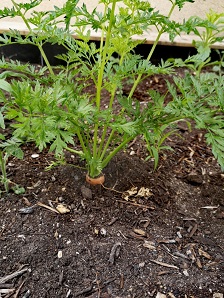 Si les framboisiers ont largement profité de la météo pour se développer au pied de notre jardinet, une seule carotte, plantée par les CE2, aura résisté aux petites mains curieuses de gratter "juste un petit peu" dans le bac à potager!